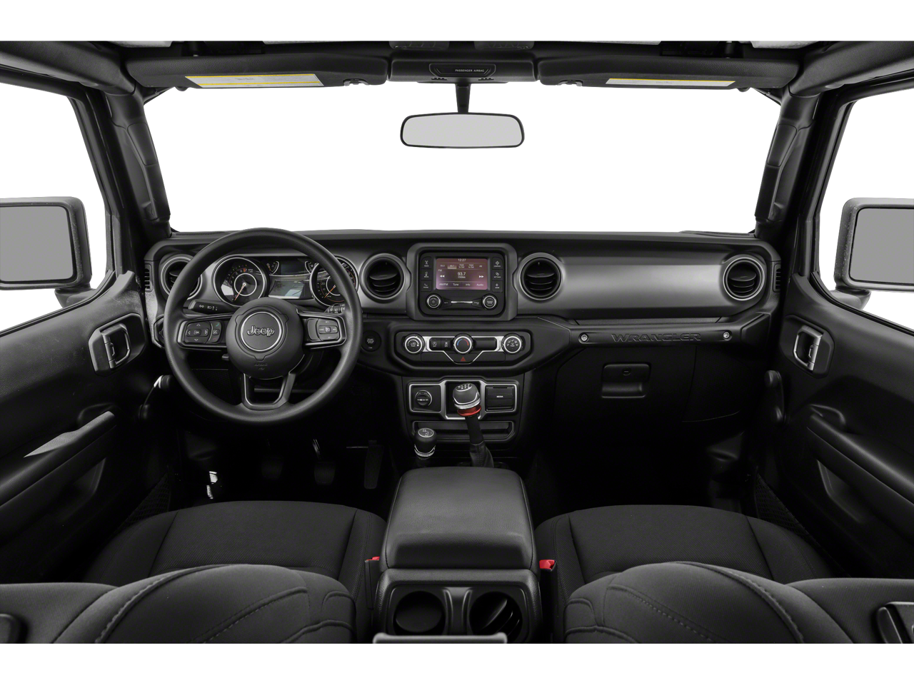This vehicle comes equipped with: Quick Order Package 28S Sport S (Air Conditioning, Automatic Headlamps, Deep Tint Sunscreen Windows, Front 1-Touch Down Power Windows, Leather Wrapped Steering Wheel, Power Heated Mirrors, Remote Keyless Entry, Security Alarm, Speed Sensitive Power Locks, Sun Visors w/Illuminated Vanity Mirrors, and Wheels: 17 x 7.5 Tech Silver Aluminum), 3.45 Rear Axle Ratio, 4-Wheel Disc Brakes, 8 Speakers, ABS brakes, AM/FM radio, Anti-Spin Differential Rear Axle, Black 3-Piece Hard Top, Brake assist, Bridgestone Brand Tires, Cloth Low-Back Bucket Seats, Compass, Delay-off headlights, Driver door bin, Driver vanity mirror, Dual front impact airbags, Dual front side impact airbags, Electronic Stability Control, Freedom Panel Storage Bag, Front anti-roll bar, Front Bucket Seats, Front Center Armrest w/Storage, Front fog lights, Front reading lights, Integrated roll-over protection, Low tire pressure warning, Manufacturer's Statement of Origin (DISC), MOPAR All-Weather Floor Mats, No Soft Top, Non-Lock Fuel Cap w/o Discriminator, Normal Duty Suspension, Occupant sensing airbag, Outside temperature display, ParkView Rear Back-Up Camera, Passenger door bin, Passenger vanity mirror, Power steering, Radio data system, Radio: Uconnect 3 w/5 Display, Rear anti-roll bar, Rear reading lights, Rear Window Defroster, Rear Window Wiper/Washer, Speed control, Steering wheel mounted audio controls, Tachometer, Telescoping steering wheel, Tilt steering wheel, Traction control, Trip computer, Variably intermittent wipers, and Wheels: 17 x 7.5 Black Steel Styled.