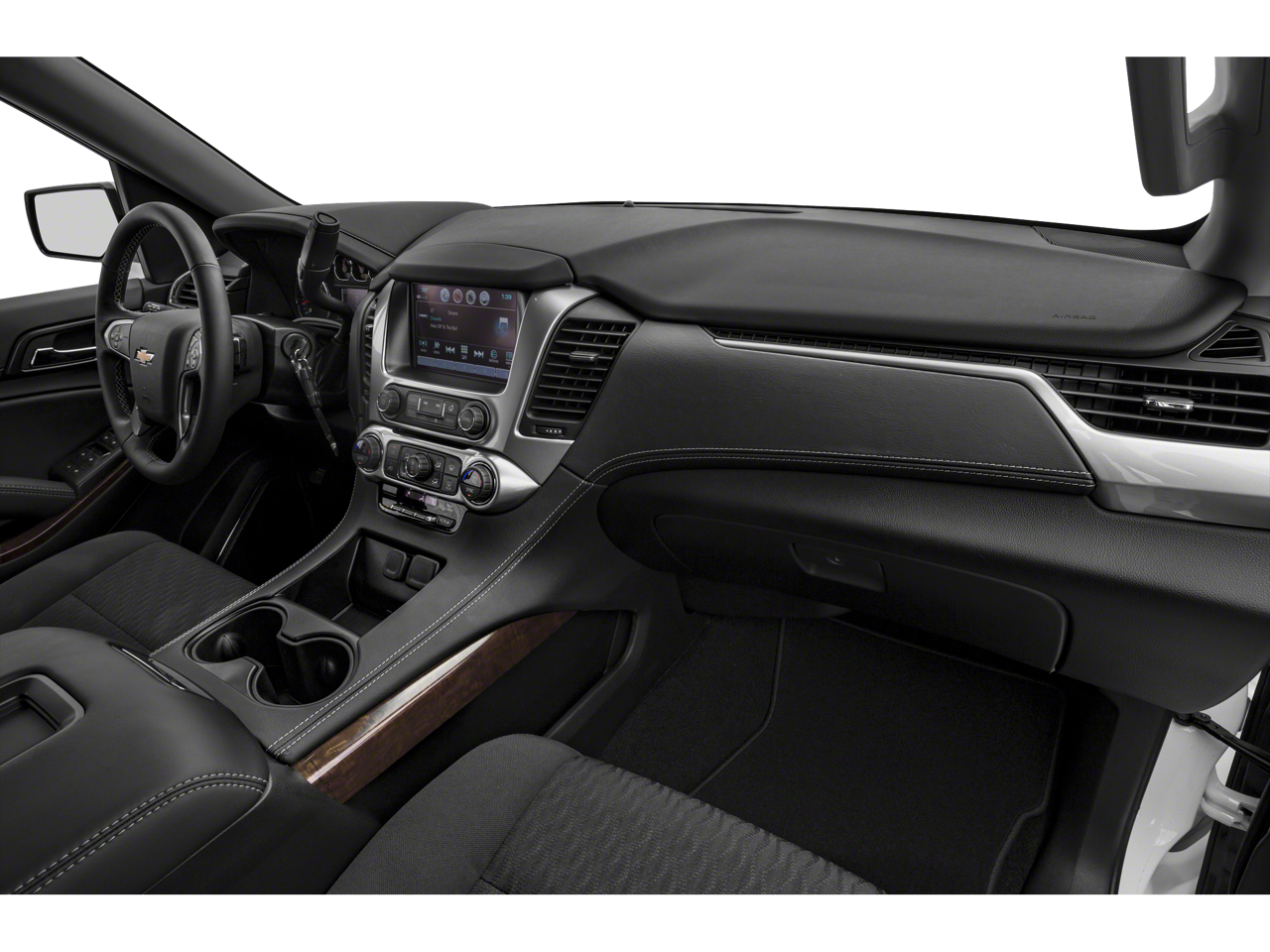 This vehicle comes equipped with: Enhanced Driver Alert Package (Y86) (Automatic Emergency Braking, Forward Collision Alert, IntelliBeam Headlamps, and Lane Keep Assist w/Lane Departure Warning), License Plate Front Mounting Package, Preferred Equipment Group 1LT (1st & 2nd Row Color-Keyed Carpeted Floor Mats, 2nd Row 60/40 Split-Folding Manual Bench, 3rd Row Manual 60/40 Split-Folding Fold Flat Bench, 4-Wheel Antilock Disc Brakes w/Brake Assist, 5 12-Volt Auxiliary Power Outlets, Auto-Dimming Inside Rear-View Mirror, Black Assist Steps, Bose Premium 9-Speaker System, Cargo Net, Color-Keyed Carpeting Floor Covering, Driver Inboard & Front Passenger Airbags, Electronic Cruise Control w/Set & Resume Speed, Extended-Range Remote Keyless Entry, Floor Console, Front Passenger 6-Way Power Seat Adjuster, Leather-Wrapped Steering Wheel, Memory Settings, Power Liftgate, Power-Adjustable Accelerator & Brake Pedals, Rear Park Assist w/Audible Warning, Remote Vehicle Start, Roof-Mounted Luggage Rack Side Rails, SiriusXM Radio, and Universal Home Remote), Premium Smooth Ride Suspension Package, Black Leather, 18 x 8.5 Aluminum Wheels, 3.08 Rear Axle Ratio, 3rd row seats: split-bench, 4-Wheel Disc Brakes, 9 Speakers, ABS brakes, Adjustable pedals, Air Conditioning, Alloy wheels, AM/FM radio: SiriusXM, Apple CarPlay/Android Auto, Auto High-beam Headlights, Auto-dimming Rear-View mirror, Automatic temperature control, Bluetooth® for Phone, Brake assist, Bumpers: body-color, CD player, Compass, Delay-off headlights, Driver door bin, Driver vanity mirror, Dual front impact airbags, Dual front side impact airbags, Electronic Stability Control, Emergency communication system: OnStar and Chevrolet connected services capable, Exterior Parking Camera Rear, Front anti-roll bar, Front Bucket Seats, Front Center Armrest, Front dual zone A/C, Front Heated Reclining Bucket Seats, Front reading lights, Front wheel independent suspension, Fully automatic headlights, Garage door transmitter, HD Radio, Heated door mirrors, Heated front seats, Illuminated entry, Leather steering wheel, Leather-Appointed Seat Trim, Low tire pressure warning, Memory seat, Occupant sensing airbag, Outside temperature display, Overhead airbag, Overhead console, Panic alarm, Passenger door bin, Passenger vanity mirror, Pedal memory, Power door mirrors, Power driver seat, Power passenger seat, Power steering, Power windows, Premium audio system: Chevrolet MyLink, Radio: Chevrolet Infotainment AM/FM Stereo, Rain sensing wipers, Rear air conditioning, Rear anti-roll bar, Rear reading lights, Rear seat center armrest, Rear window defroster, Rear window wiper, Remote keyless entry, Security system, Single-Slot CD/MP3 Player, Speed control, Speed-sensing steering, Split folding rear seat, Spoiler, Steering wheel mounted audio controls, Tachometer, Telescoping steering wheel, Tilt steering wheel, Traction control, Trip computer, Variably intermittent wipers, and Voltmeter.