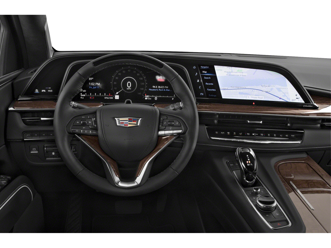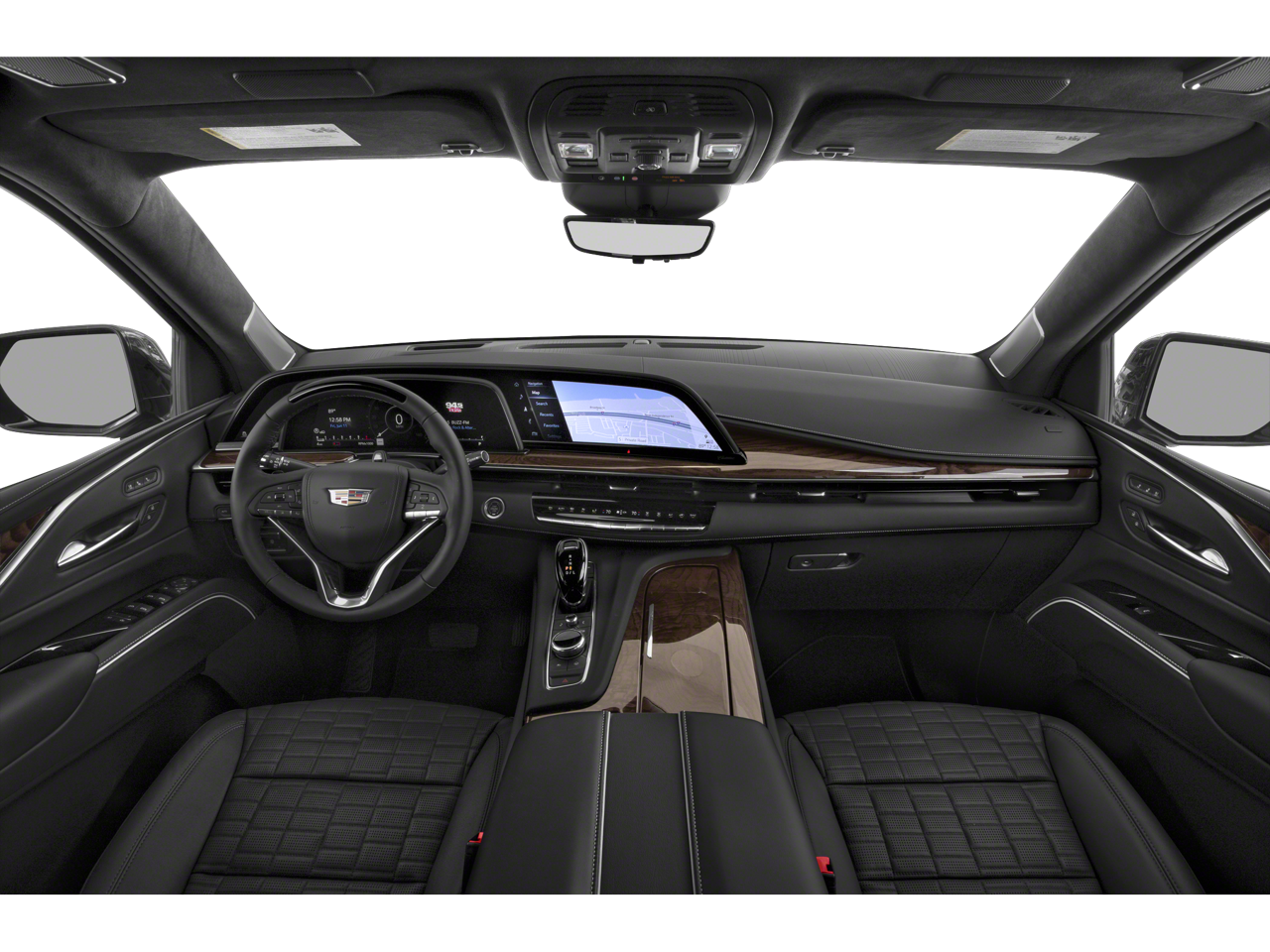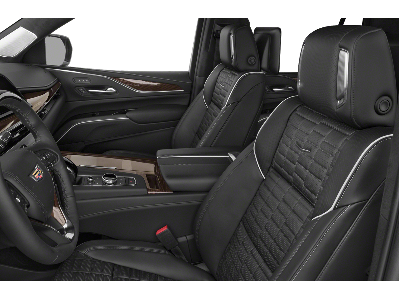 This vehicle comes equipped with: Preferred Equipment Group 1SH (Adaptive Cruise Control, AKG Studio Reference 36-Speaker Audio System, Automatic Seat Belt Tightening, Automatic Stop/Start, Body-Color Door Handles, Door Lock & Latch Shields, Electronic Limited-Slip Differential, Enhanced Automatic Emergency Braking, Enhanced Automatic Parking Assist, Floor Console w/Covered Storage, Front Auxiliary 12-volt Power Outlet, Glass Breakage Sensor, Hitch Guidance w/Hitch View, Integrated Trailer Brake Controller, Platinum Interior Trim, Power Panoramic Tilt-Sliding Sunroof, Rear Camera Mirror, Rear Camera Mirror Washer, Rear Cross Traffic Alert, Rear Seat Entertainment System, Reconfigurable Full-Color Head-Up Display, Reverse Automatic Braking, Running Board Assist Steps, Smart Trailer Integration Indicator, Start/Stop System Disable Button, Theft-Deterrent Alarm System, Trailer Side Blind Zone Alert, Vehicle Inclination Sensor, and Vehicle Interior Movement Sensor), Touring Package (Air Ride Adaptive Suspension, Illuminating Front & Rear Sill Plates, and Soft Closing Front & Rear Doors), 4WD, Jet Black Leather, 16.9 Diagonal OLED Infotainment Screen, 2-Presets Memory For Driver Seat Adjuster, 3.23 Axle Ratio, 3rd row seats: split-bench, 4-Way Power Driver Lumbar Seat Adjuster, 4-Way Power Front Passenger Lumbar Seat Adjuster, 4-Wheel Disc Brakes, 8-Way Power Driver Seat Adjuster, 8-Way Power Front Passenger Seat Adjuster, A/V remote, ABS brakes, Adaptive suspension, Air Conditioning, Alloy wheels, AM/FM radio: SiriusXM with 360L, Apple CarPlay/Android Auto, Audio memory, Auto High-beam Headlights, Auto tilt-away steering wheel, Auto-dimming door mirrors, Auto-dimming Rear-View mirror, Automatic temperature control, Brake assist, Bumpers: body-color, Compass, Delay-off headlights, Door auto-latch, Driver door bin, Driver vanity mirror, Dual front impact airbags, Dual front side impact airbags, Electronic Stability Control, Emergency communication system: OnStar and Cadillac connected services capable, Four wheel independent suspension, Front 6-Piston Brembo Brake Upgrade (LPO), Front anti-roll bar, Front Bucket Seats, Front Center Armrest w/Storage, Front dual zone A/C, Front License Plate Bracket, Front reading lights, Full Semi-Aniline Leather Seats, Fully automatic headlights, Garage door transmitter, Genuine wood console insert, Genuine wood dashboard insert, Genuine wood door panel insert, Gloss Black Escalade Nameplate (LPO), HD Radio, Headphones, Heads-Up Display, Heated & Ventilated Driver & Front Passenger Seats, Heated door mirrors, Heated Driver & Front Passenger Seats, Heated front seats, Heated rear seats, Heated steering wheel, Illuminated entry, Leather steering wheel, Low tire pressure warning, Magnetic Ride Control Suspension, Memory seat, Navigation System, Not Equipped w/Steering Column Lock, Occupant sensing airbag, Outside temperature display, Overhead airbag, Overhead console, Panic alarm, Passenger door bin, Passenger vanity mirror, Power door mirrors, Power driver seat, Power Liftgate, Power Lumbar Massage Driver Seat, Power Lumbar Massage Front Passenger Seat, Power moonroof, Power passenger seat, Power steering, Power windows, Radio data system, Radio: AM/FM/SiriusXM w/Navigation, Rain sensing wipers, Rear air conditioning, Rear anti-roll bar, Rear audio controls, Rear reading lights, Rear window defroster, Rear window wiper, Remote keyless entry, Roof rack: rails only, Security system, SiriusXM w/360L, Speed control, Split folding rear seat, Spoiler, Steering wheel memory, Steering wheel mounted audio controls, Super Cruise, Tachometer, Teen Driver, Telescoping steering wheel, Tilt steering wheel, Traction control, Trip computer, Turn signal indicator mirrors, Variably intermittent wipers, Ventilated front seats, Voltmeter, Wheels: 22 12-Spoke Polished Alloy, and Wireless Apple CarPlay/Wir