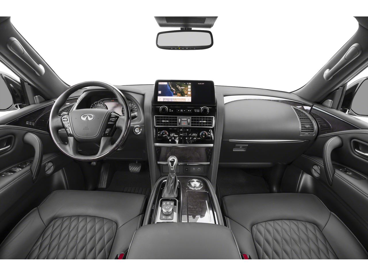 - Radio: Bose Premium Audio System w/13 Speakers -inc: driver's audio stage speed-sensitive volume control, 2 subwoofers, INFINITI InTouch 12.3" interactive display, INFINITI InTouch services (1-year premium trial and 5-year select trial), over-the-air head unit update capability, INFINITI navigation w/lane guidance and 3D building graphics, MapCare w/over-the-air update compatibility (5-year trial period), premium traffic w/live traffic information (5-year trial period), TomTom weather (5-year trial period), HD radio technology, Apple Carplay w/wireless Apple Carplay integration and Android Auto, Siri Eyes Free, Wi-Fi hotspot (30-day or 1GB trial, whichever comes first), Alexa built-in, SiriusXM radio (3-month trial period), SiriusXM Traffic (3-month trial period), SiriusXM Travel Link (3-month trial period): weather, fuel prices, stock prices, sports scores, movie listings and parking, over-the-air head unit update capability (5-year trial period), INFINITI Voice recognition for audio, navigation, Bluetooth® and vehicle information, Bluetooth® hands-free phone system and streaming audio, hands-free text messaging assistant, 2x USB ports for compatible devices for audio streaming and wireless phone charger
