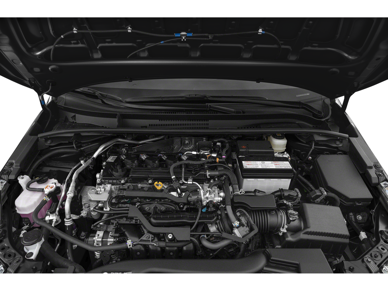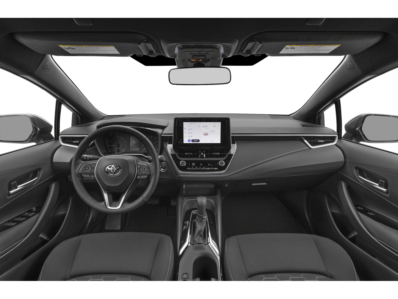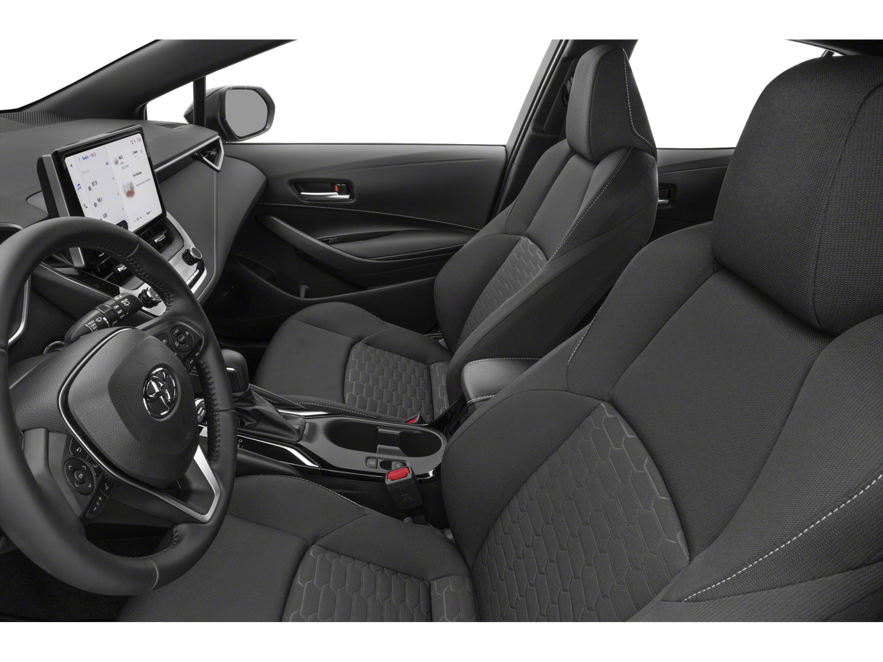 This vehicle comes equipped with: 16 Alloy Wheels, ABS brakes, Alloy wheels, Compass, Electronic Stability Control, Heated door mirrors, Illuminated entry, Low tire pressure warning, Remote keyless entry, Traction control, 4-Wheel Disc Brakes, 6 Speakers, Air Conditioning, AM/FM radio: SiriusXM, Auto High-beam Headlights, Automatic temperature control, Brake assist, Bumpers: body-color, Delay-off headlights, Driver door bin, Driver vanity mirror, Dual front impact airbags, Dual front side impact airbags, Emergency communication system: Safety Connect (up to 10-year trial subscription), Exterior Parking Camera Rear, Fabric Seat Trim, Four wheel independent suspension, Front anti-roll bar, Front Bucket Seats, Front Center Armrest, Front reading lights, Knee airbag, Leather Shift Knob, Leather steering wheel, Occupant sensing airbag, Outside temperature display, Overhead airbag, Overhead console, Panic alarm, Passenger door bin, Passenger vanity mirror, Power door mirrors, Power steering, Power windows, Radio data system, Radio: 8 Toyota Audio Multimedia, Rear anti-roll bar, Rear seat center armrest, Rear side impact airbag, Rear window defroster, Rear window wiper, Security system, Speed control, Speed-sensing steering, Split folding rear seat, Spoiler, Sport Front Seats, Steering wheel mounted audio controls, Tachometer, Telescoping steering wheel, Tilt steering wheel, Trip computer, Turn signal indicator mirrors, and Variably intermittent wipers.