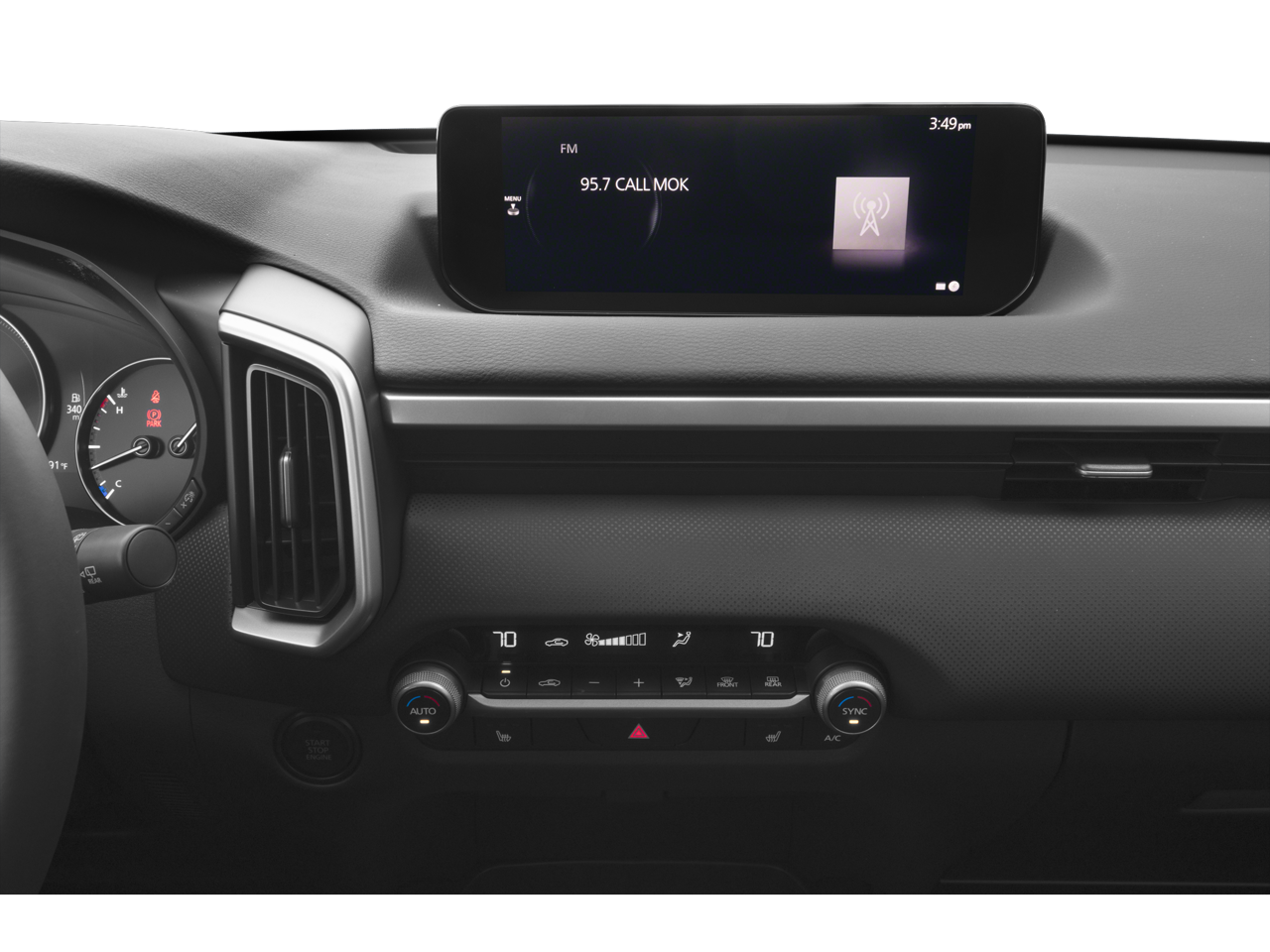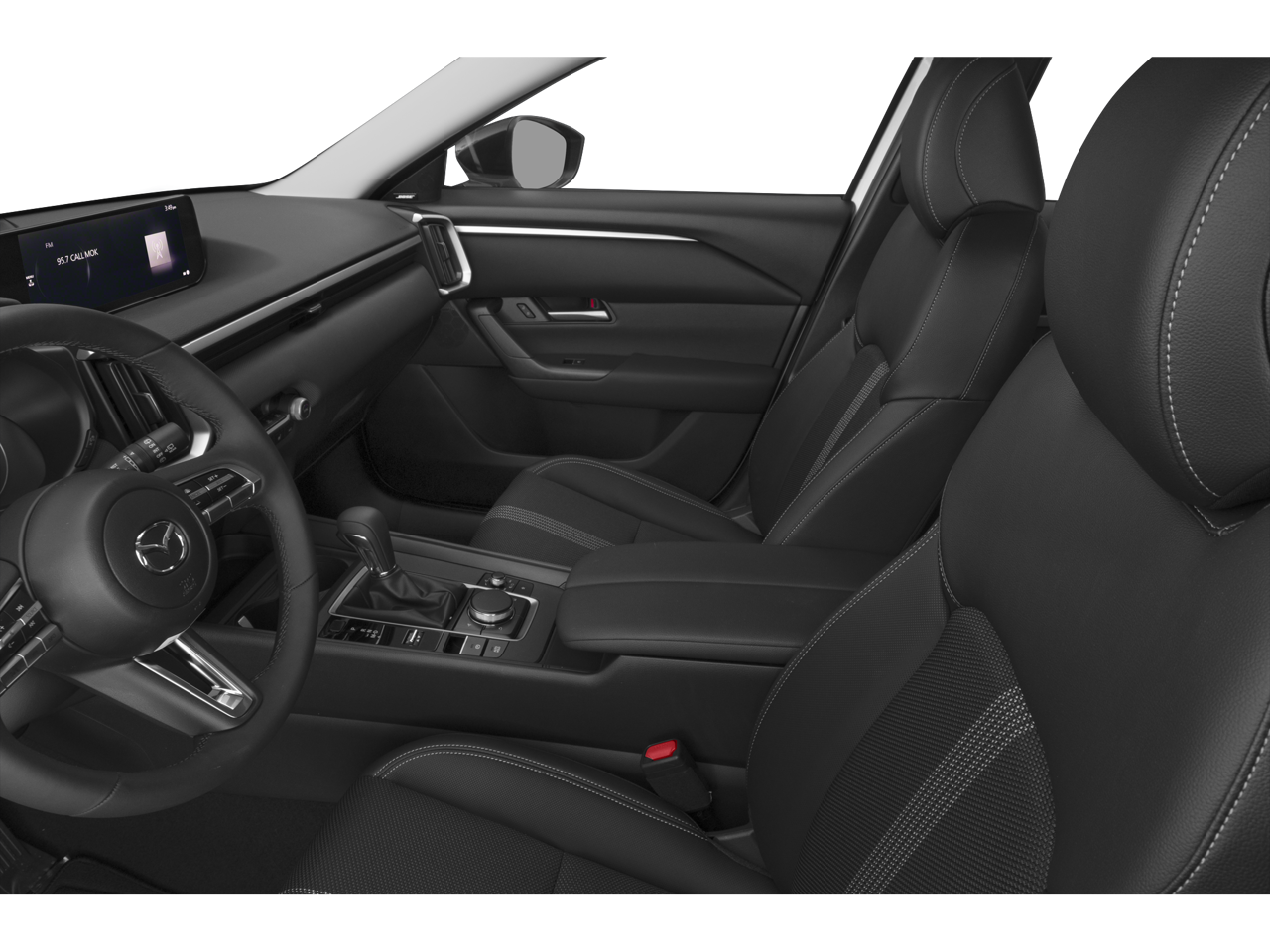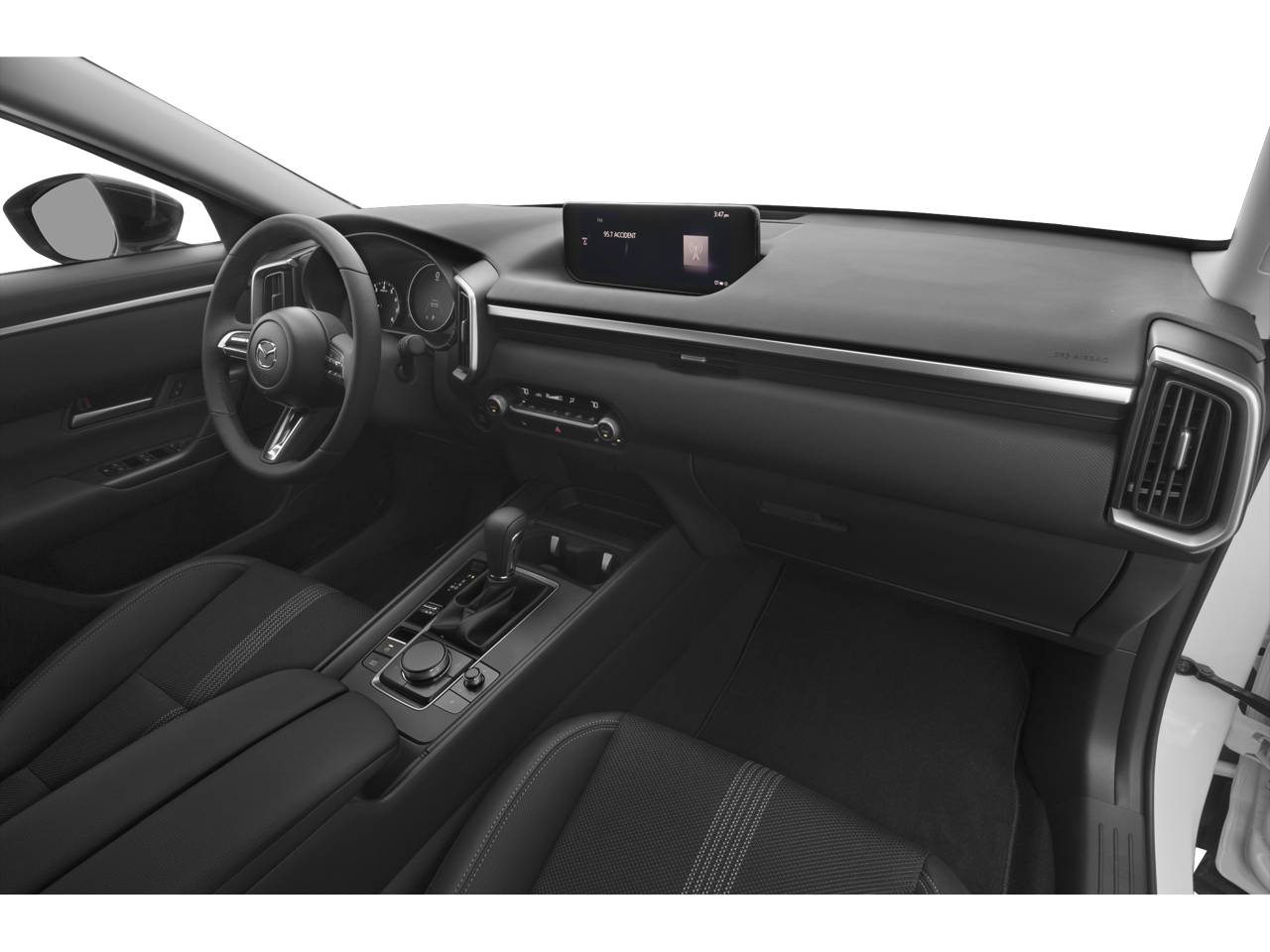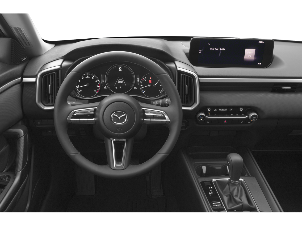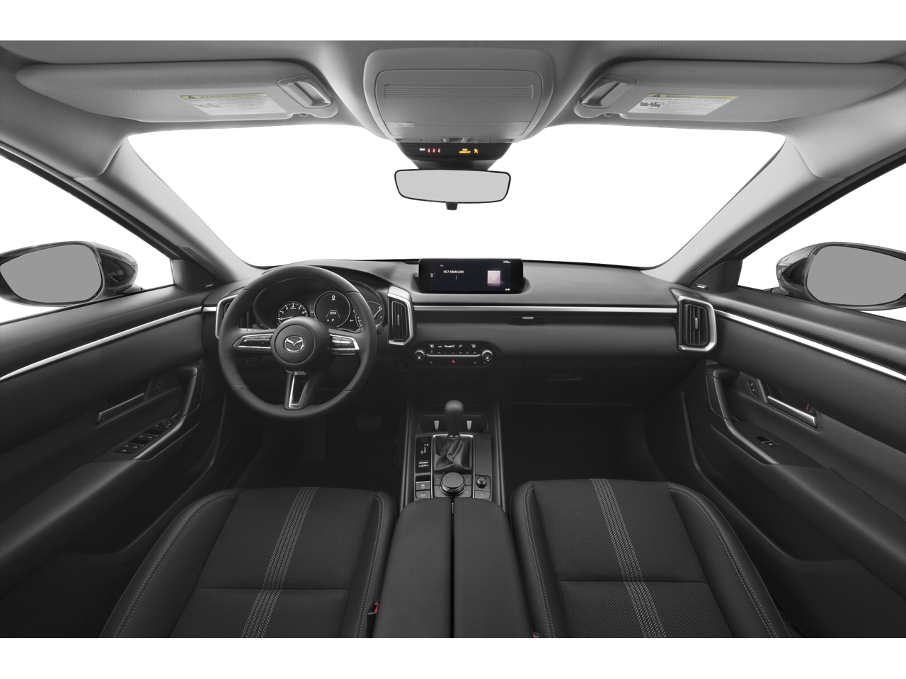 This vehicle comes equipped with: 12 Speakers, 4-Wheel Disc Brakes, ABS brakes, Air Conditioning, Alloy wheels, AM/FM radio: SiriusXM, AppLink/Apple CarPlay and Android Auto, Auto High-beam Headlights, Automatic temperature control, Brake assist, Bumpers: body-color, Delay-off headlights, Driver door bin, Driver vanity mirror, Dual front impact airbags, Dual front side impact airbags, Electronic Stability Control, Emergency communication system: MAZDA CONNECT, Exterior Parking Camera Rear, Front anti-roll bar, Front Bucket Seats, Front Center Armrest, Front dual zone A/C, Front reading lights, Front wheel independent suspension, Fully automatic headlights, Half Leatherette Seat Trim, Heated door mirrors, Heated front seats, Heated Front Seats w/3 Level Adjustment, Illuminated entry, Knee airbag, Leather Shift Knob, Leather steering wheel, Low tire pressure warning, Occupant sensing airbag, Outside temperature display, Overhead airbag, Overhead console, Panic alarm, Passenger door bin, Passenger vanity mirror, Power door mirrors, Power driver seat, Power Liftgate, Power moonroof, Power steering, Power windows, Premium Carpet Floor Mats, Radio data system, Radio: AM/FM/HD Bose 12-Speaker Audio Sound System, Rain sensing wipers, Rear seat center armrest, Rear window defroster, Rear window wiper, Remote keyless entry, Speed control, Speed-sensing steering, Split folding rear seat, Spoiler, Steering wheel mounted audio controls, Tachometer, Telescoping steering wheel, Tilt steering wheel, Traction control, Trip computer, Turn signal indicator mirrors, Variably intermittent wipers, and Wheels: 17 x 7J Aluminum Alloy Black Metallic Finish.