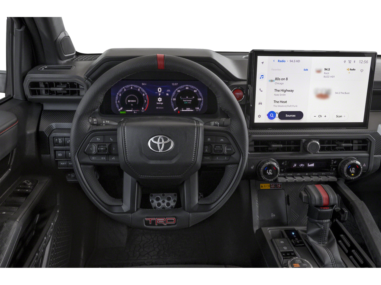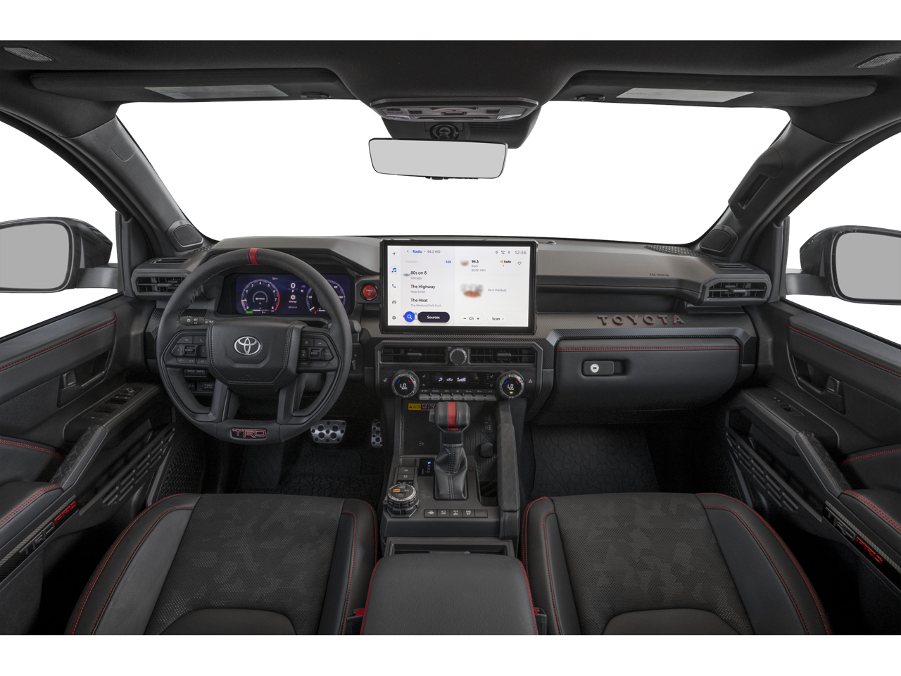 This vehicle comes equipped with: 2.4L I4 PDI Hybrid Turbocharged DOHC 16V, ABS brakes, Active Cruise Control, Alloy wheels, Electronic Stability Control, Front dual zone A/C, Heated door mirrors, Heated front seats, Illuminated entry, Low tire pressure warning, Navigation System, Power moonroof, Remote keyless entry, Traction control, 3.583 Axle Ratio, 4-Wheel Disc Brakes, 9 Speakers, Air Conditioning, AM/FM radio: SiriusXM, Anti-whiplash front head restraints, Apple CarPlay/Android Auto, Auto High-beam Headlights, Auto-dimming Rear-View mirror, Automatic temperature control, Brake assist, Bumpers: body-color, Driver door bin, Driver vanity mirror, Dual front impact airbags, Dual front side impact airbags, Emergency communication system: Safety Connect (1-year trial), Exterior Parking Camera Rear, Four wheel independent suspension, Front anti-roll bar, Front Bucket Seats, Front Center Armrest, Front fog lights, Front reading lights, Fully automatic headlights, Garage door transmitter: HomeLink, Heads-Up Display, Heated steering wheel, Htd & Vent TRD Pro IsoDynamic Performance Seats, JBL Premium Audio, Knee airbag, Leather Shift Knob, Leather steering wheel, Navigation system: Drive Connect (1 year trial) includes Cloud Navigation with real time traffic and Google POI, Occupant sensing airbag, Outside temperature display, Overhead airbag, Overhead console, Panic alarm, Passenger door bin, Passenger vanity mirror, Power door mirrors, Power driver seat, Power passenger seat, Power steering, Power windows, Radio: 14 Toyota Audio Multimedia, Rear anti-roll bar, Rear step bumper, Rear window defroster, Security system, SofTex Seat Trim, Speed control, Speed-sensing steering, Split folding rear seat, Steering wheel mounted audio controls, Tachometer, Telescoping steering wheel, Tilt steering wheel, Trip computer, Turn signal indicator mirrors, Variably intermittent wipers, Ventilated front seats, and Wheels: 18 Black TRD Pro Alloy.