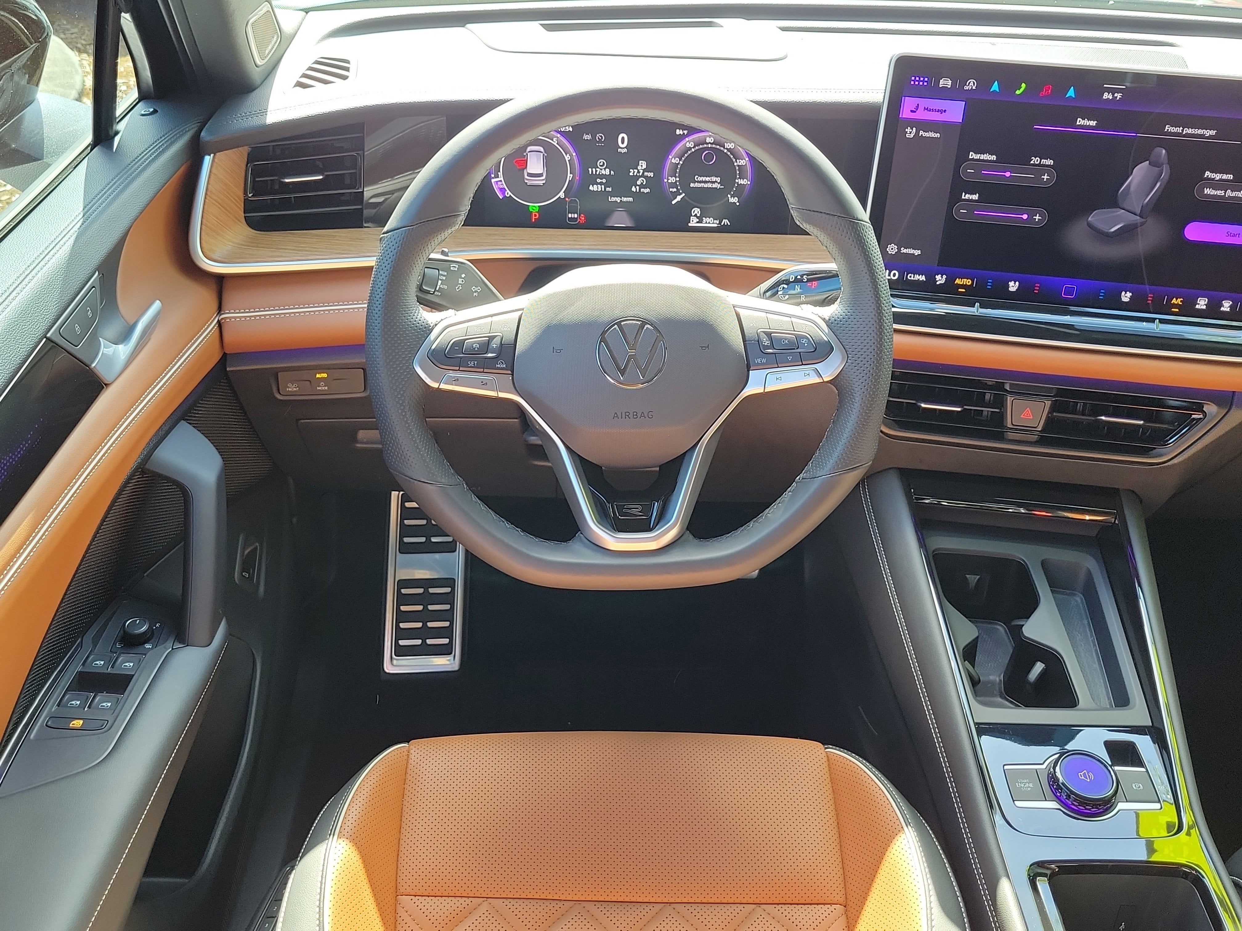 - Radio: MIB4 Discover Media Touchscreen Nav AM/FM -inc: WMA/MP3/FLAC player w/USB, 15" touchscreen multi-function center display w/backlit sliders, voice control, harman kardon 12-speaker premium sound system w/center speaker, subwoofer and amplifier, capability for in-vehicle 4G LTE enabled Wi-Fi (cellular data plan required; includes limited trial), capability for VW Car-Net services (capabilities for services vary; requires enrollment or subscription), Bluetooth® connectivity (for compatible devices), SiriusXM w/360L (w/3-month free trial subscription; 360L services require acceptance of Car-Net terms), App-Connect smartphone integration (w/Apple CarPlay, Android Auto and MirrorLink) via USB, wireless App-Connect smartphone integration (for compatible devices) w/multi-phone pairing capability, 45W fast charging (for compatible mobile phones and accessories) via USB in both rows and Qi wireless inductive charger, cooled, up to 15W (for compatible mobile phones and accessories)