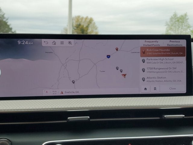 This Vehicle is nicely equipped with the following features: Option Group 01, 18 Speakers, 3rd row seats: split-bench, 4-Wheel Disc Brakes, ABS brakes, Adaptive suspension, Air Conditioning, Alloy wheels, AM/FM radio: SiriusXM, Anti-whiplash front head restraints, Auto High-beam Headlights, Auto tilt-away steering wheel, Auto-dimming door mirrors, Auto-dimming Rear-View mirror, Automatic temperature control, Brake assist, Bumpers: body-color, Cargo Net, Compass, Delay-off headlights, Driver door bin, Driver vanity mirror, Dual front impact airbags, Dual front side impact airbags, Electronic Stability Control, Emergency communication system: Genesis Connected Services, Exterior Parking Camera Rear, First Aid Kit, Four wheel independent suspension, Front and Rear Mudguards, Front anti-roll bar, Front Bucket Seats, Front Center Armrest, Front dual zone A/C, Front reading lights, Fully automatic headlights, Garage door transmitter: HomeLink, Genuine wood console insert, Genuine wood dashboard insert, Genuine wood door panel insert, Heads-Up Display, Heated and Ventilated Front Bucket Seats, Heated door mirrors, Heated front seats, Heated rear seats, Heated steering wheel, Illuminated entry, Knee airbag, Leather steering wheel, Low tire pressure warning, Memory seat, Nappa Leather Seating Surfaces, Navigation System, NFC Key Card, Occupant sensing airbag, Outside temperature display, Overhead airbag, Overhead console, Panic alarm, Passenger door bin, Passenger vanity mirror, Power door mirrors, Power driver seat, Power Liftgate, Power moonroof, Power passenger seat, Power steering, Power windows, Radio data system, Radio: AM/FM/HD Bose Premium Sound System, Rain sensing wipers, Rear air conditioning, Rear anti-roll bar, Rear reading lights, Rear seat center armrest, Rear side impact airbag, Rear window defroster, Rear window wiper, Reclining 3rd row seat, Remote keyless entry, Roadside Assistance Kit, Security system, Speed control, Speed-sensing steering, Speed-Sensitive Wipers, Split folding rear seat, Spoiler, Steering wheel memory, Steering wheel mounted audio controls, Tachometer, Telescoping steering wheel, Tilt steering wheel, Traction control, Trip computer, Turn signal indicator mirrors, Variably intermittent wipers, Ventilated front seats, Ventilated rear seats, and Wheels: 22 x 9.5J Dark Gray Matte Alloy.